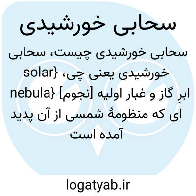 {solar nebula} [نجوم] ابرِ گاز و غبار اولیه ای که منظومۀ شمسی از آن پدید آمده است