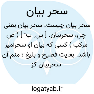 سحربیان. [ س ِ ب َ ] ( ص مرکب ) کسی که بیان او سحرآمیز باشد. بغایت فصیح و بلیغ: