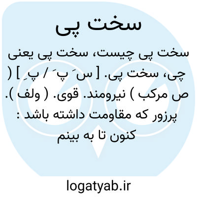 سخت پی. [ س َ پ َ / پ ِ ] ( ص مرکب ) نیرومند. قوی. ( ولف ). پرزور که مقاومت داشته باشد: