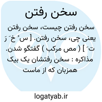 سخن رفتن. [ س ُ خ َ رَ ت َ ] ( مص مرکب ) گفتگو شدن. مذاکره: