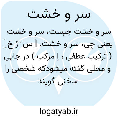 سر و خشت. [ س َ رُ خ ِ] ( ترکیب عطفی، اِ مرکب ) در جایی و محلی گفته میشودکه شخصی را سخنی گویند یا از روی مهربانی نصیحتی نمایند او نشنود. ( برهان ) ( آنندراج ). غایت اعراض و دماغ خشکی بود در محلی که به کسی سخن کنند یا از روی مهربانی نصیحت نمایند و او نشنود. ( رشیدی ):