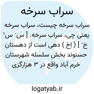 سراب سرخه. [ س َ س ُ خ َ ] ( اِخ ) دهی است از دهستان حسنوند بخش سلسله شهرستان خرم آباد واقع در 3 هزارگزی شمال خاوری الشتر و 3 هزارگزی شمال خاوری راه شوسه خرم آباد به الشتر. هوای آن سرد و دارای 150 تن سکنه است. آب آنجا از سراب سرخه تأمین میشود. محصول آنجا غلات، برنج، حبوب، لبنیات و پشم. شغل اهالی زراعت. راه آن مالرو است. ساکنین از طایفه حسنوند میباشد. ( از فرهنگ جغرافیایی ایران ج 6 ).