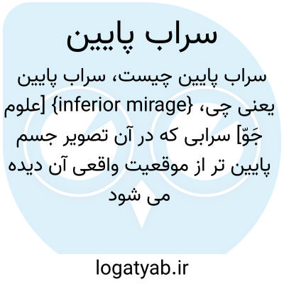 {inferior mirage} [علوم جَوّ] سرابی که در آن تصویر جسم پایین تر از موقعیت واقعی آن دیده می شود