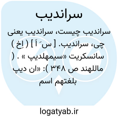 سراندیب. [ س َ اَ ] ( اِخ ) سانسکریت «سیمهلدیپ ». ( ماللهند ص 348 ): «ان دیپ بلغتهم اسم الجزیرة و سنگلدیپ هو الذی نسمیه سرندیب لانه جزیرة». ( ماللهند ص 116 ). سیلان. ( نخبةالدهر ). ( حاشیه برهان قاطع چ معین ). نام کوهی است مشهور که آدم صفی علیه السلام از بهشت بدانجا فرودآمد و مقام کرد و نقش قدم او در آنجا هست، و بعضی گویند نام شهری است بزرگ بر لب دریا و آن کوه منسوب به آن شهر است، و گویند قبر ابوالبشر در آنجا است. ( برهان ). بطرف جنوب هندوستان جزیره ای است که آن را سیلان نیز گویند و آن قریب خط استواست و شهری در آن جزیره واقع است و آن را نیز سراندیب نامند و به هندی سراندیپ راسنگلدیپ نیز گویند. ( غیاث اللغات ): و جزیره های بزرگ و نامدار که اندر اوست [ سراندیب ] و بهندی سنگلدیب، وزوی یاقوت گوناگون خیزد و الماس. ( التفهیم ابوریحان ص 168 ). و آدم به کوه سراندیب افتاد و آن را یود خوانند. ( مجمل التواریخ و القصص ص 181 ).