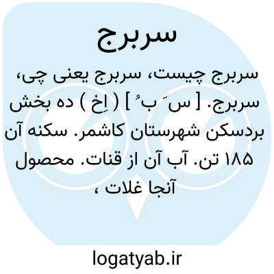 سربرج. [ س َ ب ُ ] ( اِخ ) ده بخش بردسکن شهرستان کاشمر. سکنه آن 185 تن. آب آن از قنات. محصول آنجا غلات، میوه، گردو. ( از فرهنگ جغرافیائی ایران ج 9 ).