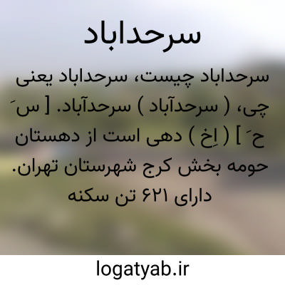 ( سرحدآباد ) سرحدآباد. [ س َ ح َ ] ( اِخ ) دهی است از دهستان حومه بخش کرج شهرستان تهران. دارای 621 تن سکنه است. آب آن از رودخانه کرج. محصول آن غلات، چغندر قند، باغات یونجه، قلمستان است. ( از فرهنگ جغرافیائی ایران ج 1 ).