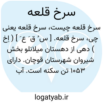 سرخ قلعه. [ س ُ ق َ ع َ ] ( اِخ ) دهی از دهستان میلانلو بخش شیروان شهرستان قوچان. دارای 1053 تن سکنه است. آب آن از چشمه. محصول آن غلات. ( از فرهنگ جغرافیائی ایران ج 9 ).