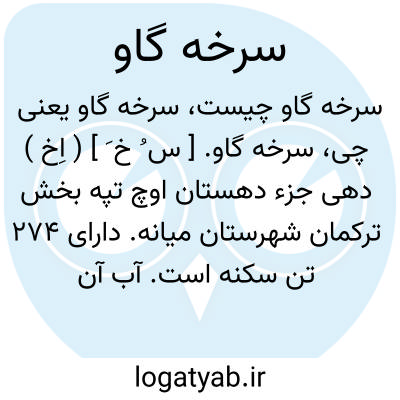 سرخه گاو. [ س ُ خ َ ] ( اِخ ) دهی از دهستان مواضعخان بخش ورزقان شهرستان اهر. دارای 268 تن سکنه است. آب آن از چشمه و محصول آن غلات است. ( از فرهنگ جغرافیائی ایران ج 4 ).