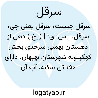 سرقل. [ س َ ق ُ ] ( اِخ ) دهی از دهستان بهمئی سرحدی بخش کهکیلویه شهرستان بهبهان. دارای 150 تن سکنه. آب آن از چشمه. محصول آن غلات،پشم، لبنیات است. ( از فرهنگ جغرافیائی ایران ج 6 ).