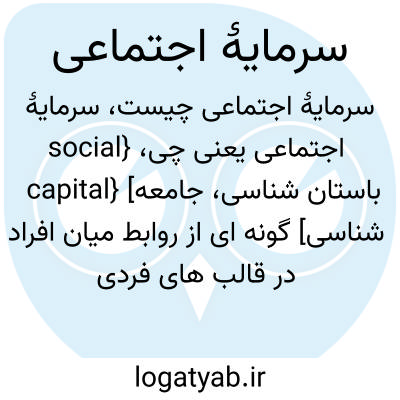 {social capital} [باستان شناسی، جامعه شناسی] گونه ای از روابط میان افراد در قالب های فردی و اجتماعی که تأثیر بسیار زیادی بر دستاوردهای اقتصادی و فرهنگی دارد