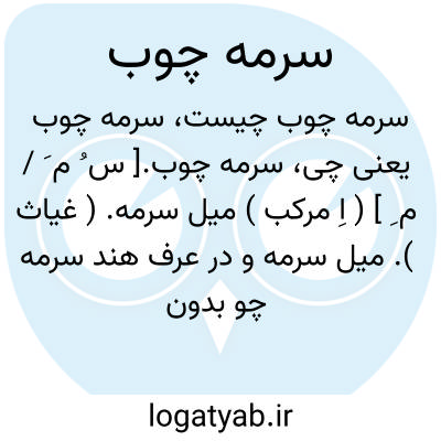 سرمه چوب.[ س ُ م َ / م ِ ] ( اِ مرکب ) میل سرمه. ( غیاث ). میل سرمه و در عرف هند سرمه چو بدون موحده شهرت دارد و چون توافق این دو زبان زیاده از بیان است دور نیست که این در فارسی صحیح باشد، مثل جاروب و جارو و رفت و روب و رفت و رو. ( آنندراج ). میل. ( ربنجنی ):