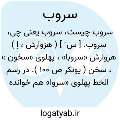سروب. [ س َ ] ( هزوارش، اِ ) هزوارش «سروبا»، پهلوی «سخون »، سخن ( یونکر ص 100 ). در رسم الخط پهلوی «سروا» هم خوانده می شود. رجوع کنید به سروا. ( حاشیه برهان قاطع چ معین ). به لغت زند و پازند بمعنی سخن باشد و بعربی کلام گویند. ( برهان ) ( انجمن آرای ناصری ) ( آنندراج ).