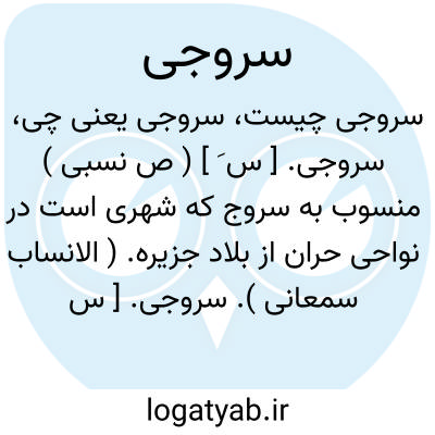 سروجی. [ س َ ] ( ص نسبی ) منسوب به سروج که شهری است در نواحی حران از بلاد جزیره. ( الانساب سمعانی ).