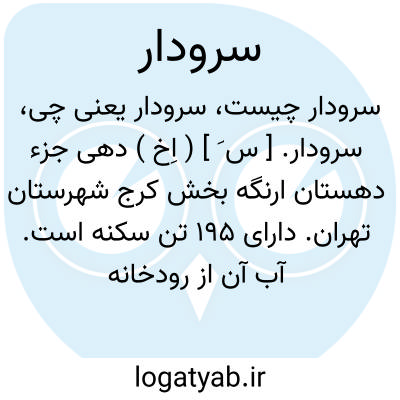 💡 سرودار روستایی از توابع بخش آسارا شهرستان کرج در استان البرز ایران است. ساکنین سرودار به زبان تاتی صحبت میکنند.
