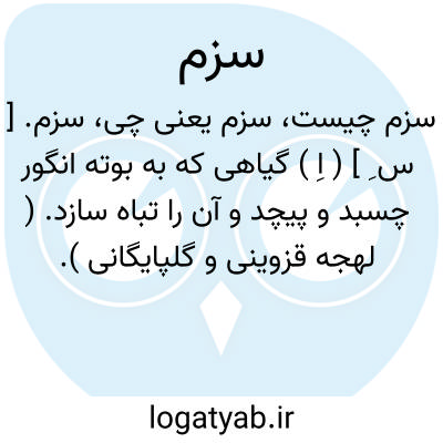 سزم. [ س ِ ] ( اِ ) گیاهی که به بوته انگور چسبد و پیچد و آن را تباه سازد. ( لهجه قزوینی و گلپایگانی ).