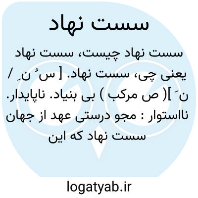 سست نهاد. [ س ُ ن ِ / ن َ ]( ص مرکب ) بی بنیاد. ناپایدار. نااستوار:
