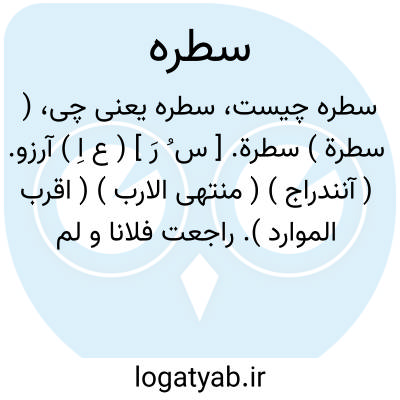 ( سطرة ) سطرة. [ س ُ رَ ] ( ع اِ ) آرزو. ( آنندراج ) ( منتهی الارب ) ( اقرب الموارد ). راجعت فلانا و لم یساعد سطرتی؛ ای اُمنیتی. ( اقرب الموارد ).