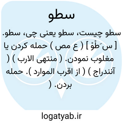 حمله و گرفتن به شدّت. در قاموس گوید «سطا علیه و به سطواً و سطوة: صال او قهر بالبطش» و در چهره کفّار به هنگام خوانده شدن آیات ما انکار میبینی نزدیک است به سوی کسانیکه آیان ما را برآنها میخوانند حمله کنند و دست بگشایند. این کلمه فقط یکبار در قرآن یافته است.