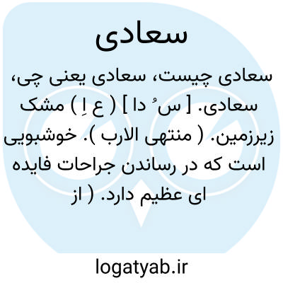 سعادی. [ س ُ دا ] ( ع اِ ) مشک زیرزمین. ( منتهی الارب ). خوشبویی است که در رساندن جراحات فایده ای عظیم دارد. ( از اقرب الموارد ).