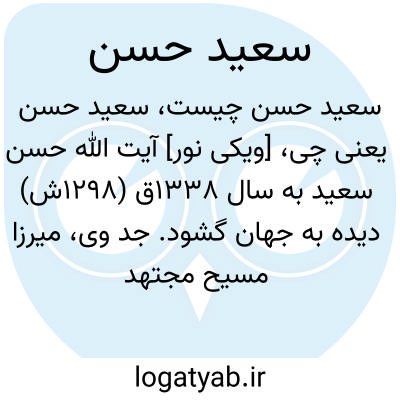 [ویکی نور] آیت الله حسن سعید به سال 1338ق (1298ش) دیده به جهان گشود. جد وی، میرزا مسیح مجتهد تهرانی استرآبادی (1193- 1263ق) از جمله فقهای بزرگ بود که رهبری قیام مردم تهران در سال 1244ق برضد سیاستمداران روس را به عهده داشت. پدر وی، آیت الله حاج میرزا عبدالله نیز از علمای طراز اول تهران بود.