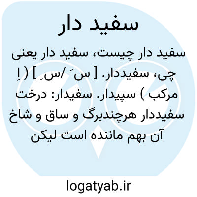 سفیددار. [ س َ /س ِ ] ( اِ مرکب ) سپیدار. سفیدار: درخت سفیددار هرچندبرگ و ساق و شاخ آن بهم ماننده است لیکن انواع بسیار دارد. ( فلاحت نامه ). رجوع به سپیدار و سفیدار شود.