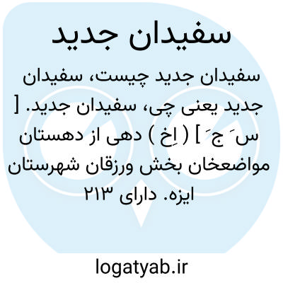 سفیدان جدید. [ س َ ج َ ] ( اِخ ) دهی از دهستان مواضعخان بخش ورزقان شهرستان ایزه. دارای 213 تن سکنه و آب آن از چشمه است. محصول آن غلات، حبوبات، بادام و کرچک است. ( از فرهنگ جغرافیایی ایران ج 4 ).