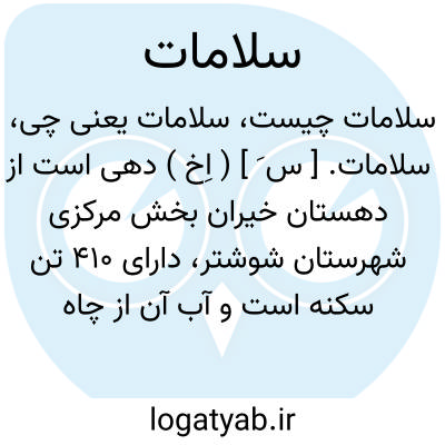 سلامات. [ س َ ] ( اِخ ) دهی است از دهستان خیران بخش مرکزی شهرستان شوشتر، دارای 410 تن سکنه است و آب آن از چاه میباشد. محصول آن غلات و شغل اهالی زراعت است. ساکنین از طایفه عرب باوی هستند. ( از فرهنگ جغرافیایی ایران ج 6 ).