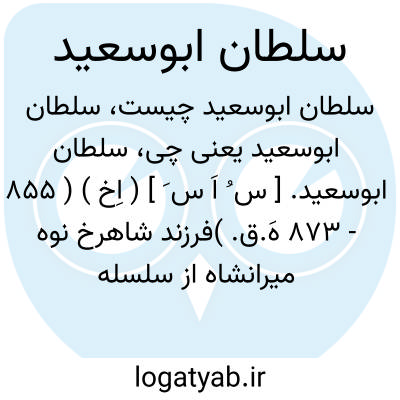 سلطان ابوسعید. [ س ُ اَ س َ ] ( اِخ ) ( 855 - 873 هَ.ق. )فرزند شاهرخ نوه میرانشاه از سلسله تیموری که بعداز وی بسلطنت رسید. اوضاع ممالک شاهرخ بعد از او قرین هرج و مرج شد از هر جانب یکی از امیرزادگان بدعوی سلطنت برخاست تا نوبت به سلطان ابوسعید نواده ٔمیرانشاه پسر تیمور رسید که همه مدعیان ملک را برانداخت. در مدت سلطنت 18 ساله او از اغتشاش ولایت ایران جلوگیری شد و قسمتی بزرگ از ممالک شاهرخ مجدداً انتظام گرفت. ابوسعید در آغاز کار بیاری ابوالخیرخان اوزبک که او را پناه داده بود بپادشاهی رسید و پس از تصفیه امور خراسان و کابل و سیستان و خوارزم در 873 بدست حسن بیک آق قویونلو کشته شد. رجوع به تاریخ مغول شود.