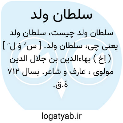 سلطان ولد. [ س ُ وَ ل َ ] ( اِخ ) بهاءالدین بن جلال الدین مولوی، عارف و شاعر. بسال 712 هَ.ق. در قونیه وفات یافته. وی مدت سی سال پیشوای طریقت مولویه بود. سه مثنوی از اوباقی است که معروفترین آنها مثنوی ولد یا ولدنامه است در تفسیر معانی عرفانی که بطبع رسیده. وی بزبان ترکی آشنایی کامل داشت و اشعاری به ترکی دارد. او را در تربت پدرش مولوی دفن کردند. ( فرهنگ فارسی معین ). رجوع به از سعدی تا جامی و ریاض العارفین ص 83 و مجمعالفصحاء ج 1 ص 244 و رجال حبیب السیر ص 12 و 13 شود.