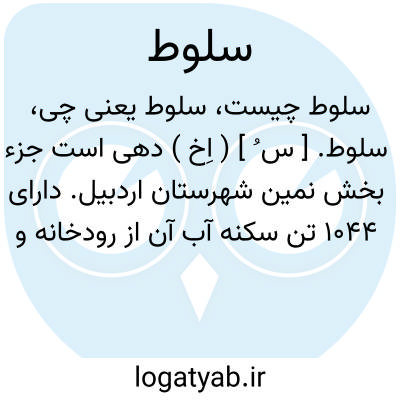 سلوط. [ س ُ ] ( اِخ ) دهی است جزء بخش نمین شهرستان اردبیل. دارای 1044 تن سکنه آب آن از رودخانه و چشمه. محصول آنجا غلات. شغل اهالی زراعت گله داری و دارای راه ارابه رو است. ( از فرهنگ جغرافیائی ایران ج 4 ).