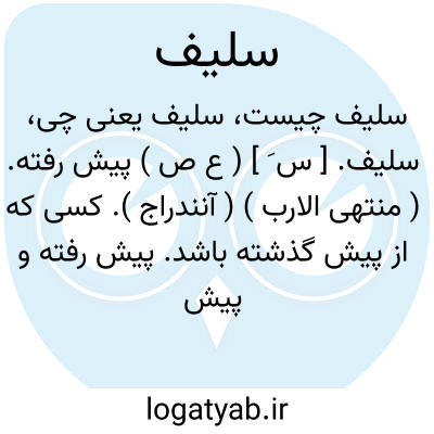 سلیف. [ س َ ] ( ع ص ) پیش رفته. ( منتهی الارب ) ( آنندراج ). کسی که از پیش گذشته باشد. پیش رفته و پیش قدم گذشته. ( ناظم الاطباء ).