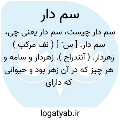 سم دار. [ س َ ] ( نف مرکب ) زهردار. ( آنندراج ). زهردار و سامه و هر چیز که در آن زهر بود و حیوانی که دارای زهرباشد، مانند: عقرب و مار و جز آن. ( ناظم الاطباء ).