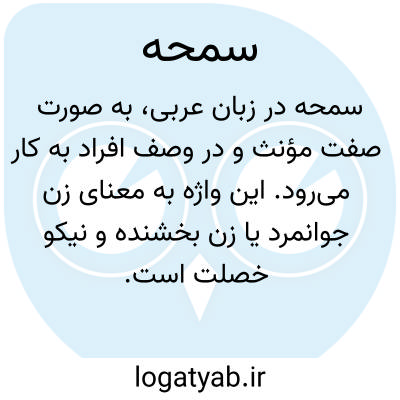سَمحَه در زبان عربی، به‌ صورت صفت مؤنث و در وصف افراد به‌ کار می‌رود. این واژه به‌ معنای زن جوانمرد یا زن بخشنده و نیکو خصلت است که از ریشه‌ی «سَمَحَ» به معنای آسان گرفتن، بخشیدن و سخاوت به‌ خرج دادن مشتق شده است. در منابع لغوی تاریخی همچون «منتهی‌الأرب» و «آنندراج» نیز این معنا تأیید شده و بر ویژگی‌های جوانمردی و بزرگواری در زنان دلالت دارد.