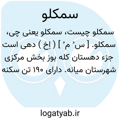 سمکلو. [ س ُ م ُ ] ( اِخ ) دهی است جزء دهستان کله بوز بخش مرکزی شهرستان میانه. دارای 190 تن سکنه است. آب آن از چشمه. محصول آنجا غلات. شغل اهالی زراعت و گله داری است. ( از فرهنگ جغرافیائی ایران ج 4 ).
