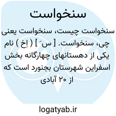 سنخواست. [ س َ ] ( اِخ ) نام یکی از دهستانهای چهارگانه بخش اسفراین شهرستان بجنورد است که از 20 آبادی بزرگ و کوچک تشکیل و مجموع نفوس آن 5220 تن است. محصول عمده آنجا غلات و باغات انگور می باشد. ( از فرهنگ جغرافیائی ایران ج 9 ).