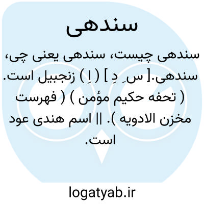 سندهی.[ س ِ دِ ] ( اِ ) زنجبیل است. ( تحفه حکیم مؤمن ) ( فهرست مخزن الادویه ). || اسم هندی عود است.