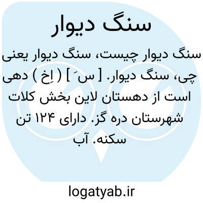 سنگ دیوار. [ س َ ] ( اِخ ) دهی است از دهستان لاین بخش کلات شهرستان دره گز. دارای 124 تن سکنه. آب آن از قنات. محصول آنجا غلات و کنجد. شغل اهالی زراعت و دارای پاسگاه ژاندارمری است. ( از فرهنگ جغرافیائی ایران ج 9 ).