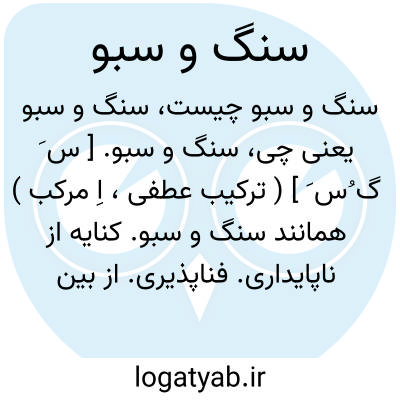 سنگ و سبو. [ س َ گ ُس َ ] ( ترکیب عطفی، اِ مرکب ) همانند سنگ و سبو. کنایه از ناپایداری. فناپذیری. از بین رفتن: