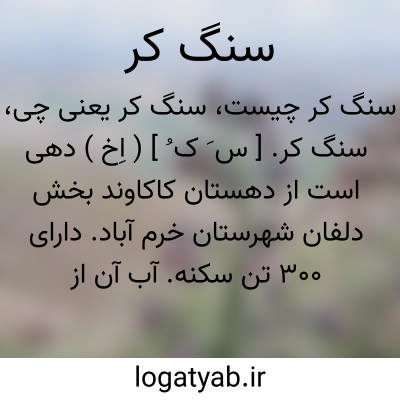 سنگ کر. [ س َ ک ُ ] ( اِخ ) دهی است از دهستان کاکاوند بخش دلفان شهرستان خرم آباد. دارای 300 تن سکنه. آب آن از چشمه و رود نورآباد. شغل اهالی زراعت و گله داری است. ( از فرهنگ جغرافیائی ایران ج 6 ).