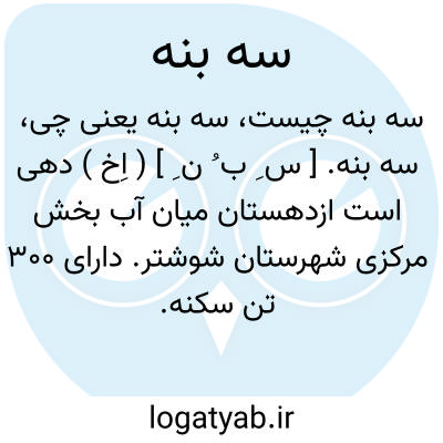 سه بنه. [ س ِ ب ُ ن ِ ] ( اِخ ) دهی است ازدهستان میان آب بخش مرکزی شهرستان شوشتر. دارای 300 تن سکنه. آب آن از کارون. محصول آنجا غلات، برنج، صیفی، کنجد. شغل اهالی زراعت است. ساکنین از طایفه عرب میان آب میباشند. ( از فرهنگ جغرافیائی ایران ج 6 ).