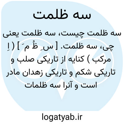 سه ظلمت. [ س ِ ظُ م َ ] ( اِ مرکب ) کنایه از تاریکی صلب و تاریکی شکم و تاریکی زهدان مادر است و آنرا سه ظلمات هم میگویند. ( برهان ) ( غیاث ):