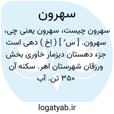 سهرون. [ س ُ ] ( اِخ ) دهی است جزء دهستان دیزمار خاوری بخش ورزقان شهرستان اهر. سکنه آن 350 تن. آب آن از چشمه. محصول آنجا غلات. شغل اهالی زراعت و گله داری و صنایع دستی آنان جاجیم بافی است. ( از فرهنگ جغرافیائی ایران ج 4 ).
