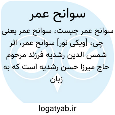 [ویکی نور] سوانح عمر، اثر شمس الدین رشدیه فرزند مرحوم حاج میرزا حسن رشدیه است که به زبان فارسی پیرامون زندگانی پدرش و خدماتی که ایشان در ساختن مدرسه و تألیفات مختلفی که از خود به جای گذاشته اند، نوشته است.