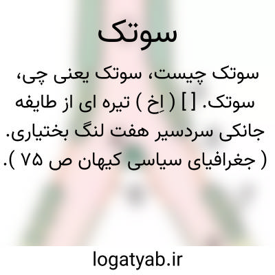 سوتک. [ ] ( اِخ ) تیره ای از طایفه جانکی سردسیر هفت لنگ بختیاری. ( جغرافیای سیاسی کیهان ص 75 ).