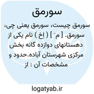 سورمق. [ م َ ] ( اِخ ) نام یکی از دهستانهای دوازده گانه بخش مرکزی شهرستان آباده.حدود و مشخصات آن: از شمال ارتفاعات اعلا از خاور کوههای سیاه و فراغه، از جنوب مزارع دهستان اقلید و دشت طغور، از باختر دهستان چنار و جلگه آباده. محصولات آن عبارتند از غلات، پنبه، کشمش، بادام. از یازده آبادی تشکیل شده و نفوس آن بالغ بر 6200 تن است. و قرای مهم آن: دشت بیضا، فیض آباد، جوشقان و مرکز دهستان قصبه سورمق است. ( از فرهنگ جغرافیائی ایران ج 7 ).