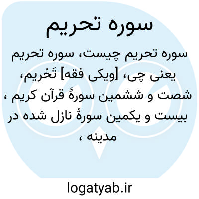 [ویکی شیعه] سوره تحریم، شصت و ششمین سوره قرآن و از سوره های مدنی که در جزء ۲۸ جای گرفته است. نام سوره از آیه اول گرفته شده است که اشاره دارد به جریانی که در آن، پیامبر(ص) برای رضایت همسرانش، با سوگندخوردن حلالی را بر خود حرام کرد. سوره تحریم گناهکاران را به توبه نصوح تشویق می کند و درباره آثار ایمان در قیامت سخن می گوید و مسلمانان را به جهاد با کفار و منافقان و سختگیری بر آنان فرا می خواند. در این سوره از همسر نوح و لوط به عنوان زنان ناصالح و از همسر فرعون (آسیه) و حضرت مریم به عنوان زنان صالح نام برده شده است.
