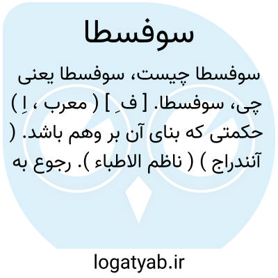 لغت نامه دهخدا سوفسطا. [ ف ِ ] ( معرب، اِ ) حکمتی که بنای آن بر وهم باشد. ( آنندراج ) ( ناظم الاطباء ). رجوع به سوفسطائی شود.