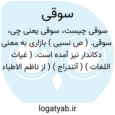سوقی. ( ص نسبی ) بازاری به معنی دکاندار نیز آمده است. ( غیاث اللغات ) ( آنندراج ) ( از ناظم الاطباء ) ( مهذب الاسماء ):