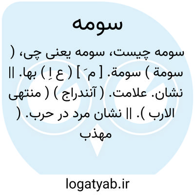 سومه. [ م َ / م ِ ] ( اِ ) انتها و حد و طرف. ( آنندراج ). لغت دساتیری است. رجوع به فرهنگ دساتیر شود.