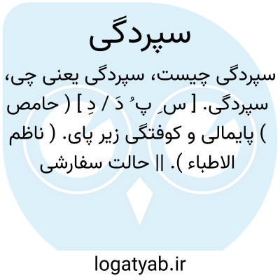 سپردگی. [ س ِ پ ُ دَ / دِ ] ( حامص ) پایمالی و کوفتگی زیر پای. ( ناظم الاطباء ). || حالت سفارشی بودن. || سپارش. ( ناظم الاطباء ).